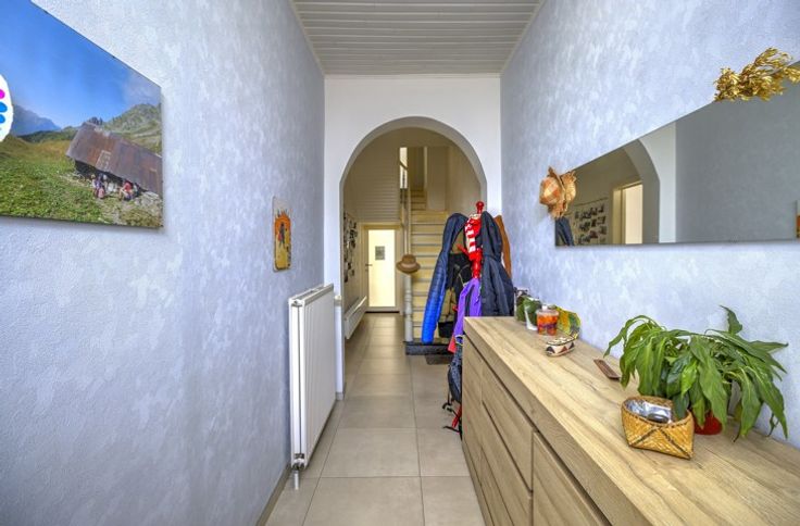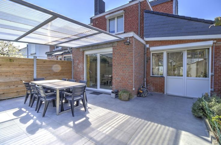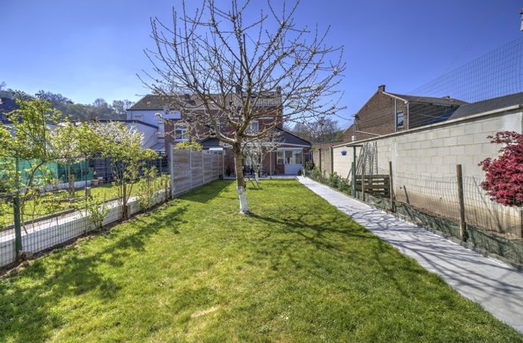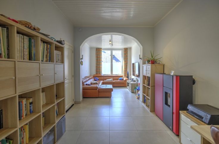 BELLE MAISON 4 CHAMBRES ENTIEREMENT RENOVEE AVEC TERRASSE ET JARDIN / COMPOSITION - Sous-sol : deux caves de 18m² - 18m² - Rez-de-chaussée : un hall d'entrée de 11m², un séjour de 25m², une salle à manger de 18m², une cuisine équipée de 12m² (frigo, congélateur, double évier, lave-vaisselle, four, micro-ondes, taques, hotte), une douche italienne avec évier et toilette de 3m², une buanderie de 11.5m², une terrasse de 25m², un jardin de 100m², un abri de jardin de 25m² - Entresol : une salle de bain de 10m² (évier, baignoire, douche italienne, toilette) - 1er étage : un palier de 3m², deux chambres de 20m² - 12m² - 2ème étage : un palier de 3m², deux chambres de 20m² - 12m² - DIVERS : la maison n'est pas libre à l'acte, entièrement rénovée entre 2020 et 2024 (toiture, châssis, électricité, chauffage, cuisine, sdb,...), toiture en ordre et isolée, châssis PVC double vitrage avec volets (électriques + manuels), chauffage central au gaz, électricité CONFORME, compteur intelligent, 11 panneaux photovoltaïques, proximité immédiate de toutes commodités, RCNI 443€, description non contractuelle communiquée à titre informatif.