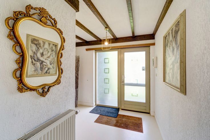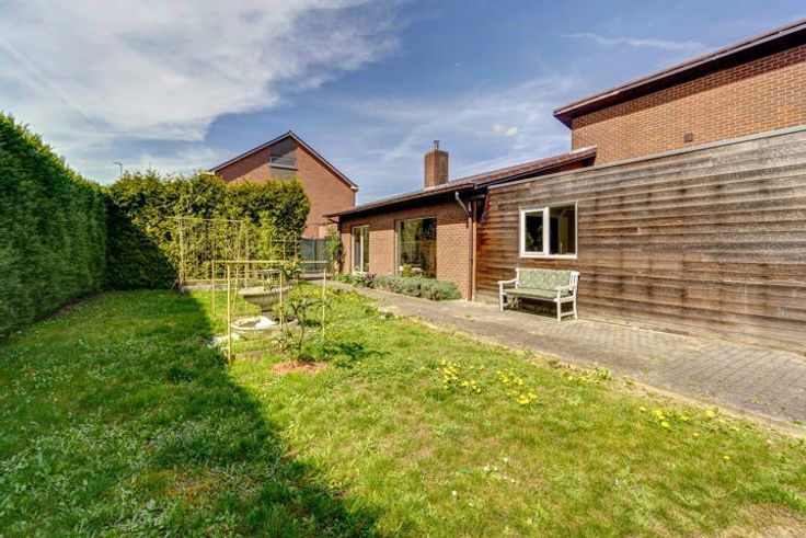 Extra’s: aparte berging, gastentoilet en inpandige garage. Alle ruimtes zijn logisch en vlot bereikbaar via een centrale hal.