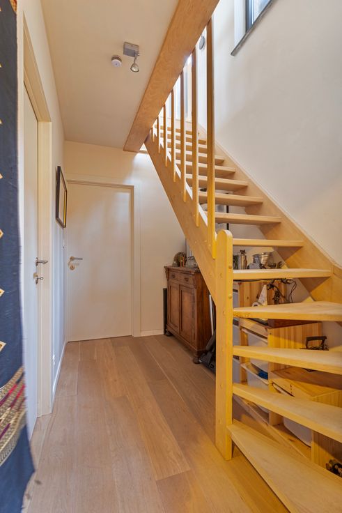 Afgewerkt met hoogwaardige materialen, waaronder een prachtige eiken vloer. EPC-label B garandeert energiezuinigheid. Dankzij 8 zonnepanelen, een nieuwe omvormer en digitale meters zijn de energiekosten laag. Een garage tegenover het gebouw is optioneel bij te kopen voor €35.000.