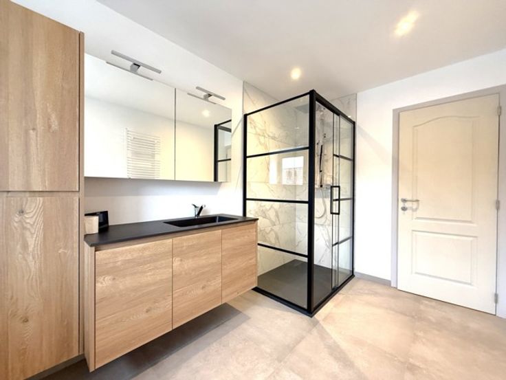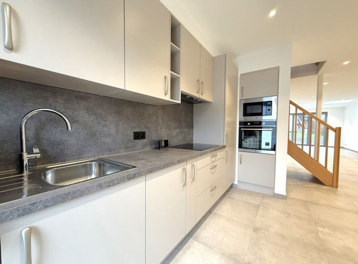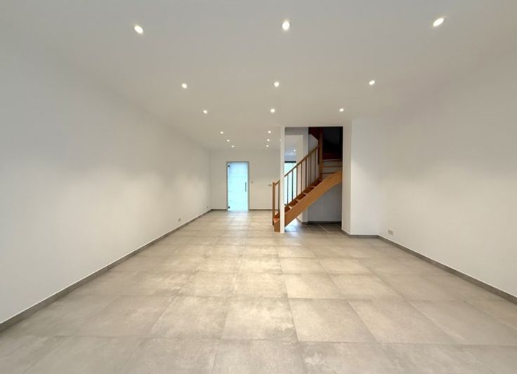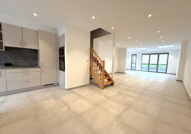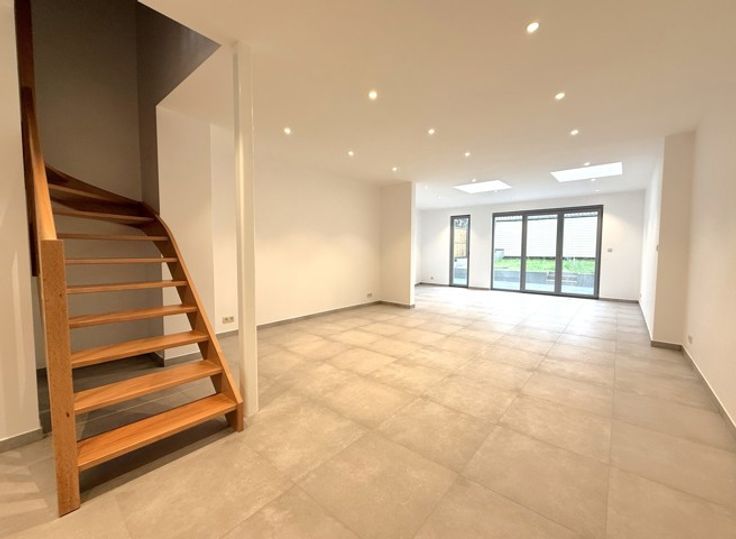 Dans un souci d'efficacité, demandes de visites souhaitées via IMMOWEB ! Superbe maison entièrement RENOVEE (3ch) avec jardin, terrasse carrelée (30 m²), et parking ext. Spacieuse, lumineuse, agréable, et confortable, elle se compose comme suit : - Rdc : hall d'entrée (av. placards), magnifique séjour (salon - salle à manger) avec cuisine super-équipée, et wc. - 1er étage : hall de nuit, 2 chambes, salle de bains (douche, bain, lavabo, et wc), et buanderie. - 2ème étage : grande chambre. (Bail : 1 an (reconductible). GL : 2 mois de loyer. - Etat des lieux : par expert et à frais partagés). Excellent niveau de confort : 1ère occupation, matériaux tendance et de qualité, PEB B, CC gaz, châssis pvc 2x vitrage, luminaires, etc. Situation idéale : au calme, et à proximité directe des commerces, crèches, écoles, transports en commun, et grands axes routiers et autoroutiers. Libre immédiatement. Intéressés ? CONTACTEZ-NOUS !!! (Visites assurées le mercredi 30 avril 2025 àpd 16h).