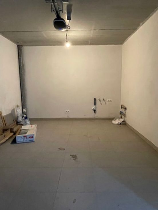 De volledig omheinde tuin is toegankelijk via de grote raampartijen in de leefruimte. Dankzij de inpandige garage en parkeerplaats voor de deur biedt de woning plaats aan meerdere wagens.