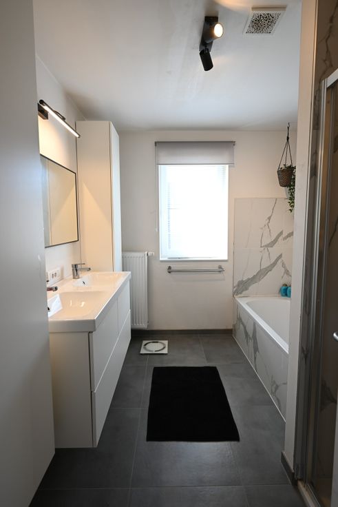 Op de eerste verdieping zijn 3 mooie slaapkamers met ingemaakte kasten, badkamer met ligbad, douche en dubbele lavabo en een afzonderlijk toilet aanwezig.