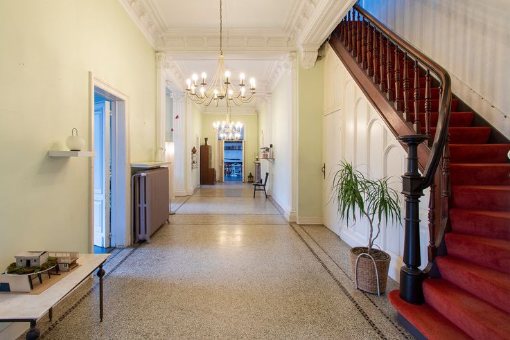 Op de gelijkvloerse verdieping treffen we de woonkamers en een grote keuken aan. De eerste verdieping bestaat uit de ruime slaapkamers en de badkamers. Op de tweede verdieping bevindt zich een volledig uitgerust appartement. De grote achtertuin met een oppervlakte van meer dan 900 m² is een residentiële bouwgrond. Dit perceel heeft een aparte kadastrale nummering en heeft een eigen toegang tot de straat.