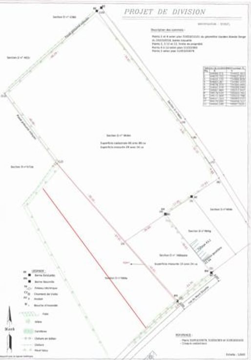 Le lot N°1 a une superficie totale de 18a50ca avec une largeur façade de 24m (repris sous teinte rouge au plan de géomètre) : prix indicatif: 97.000€.