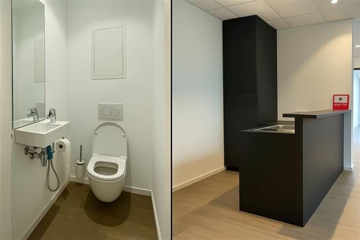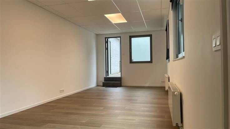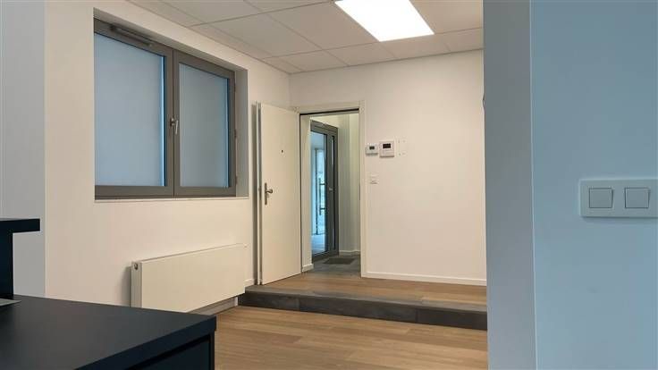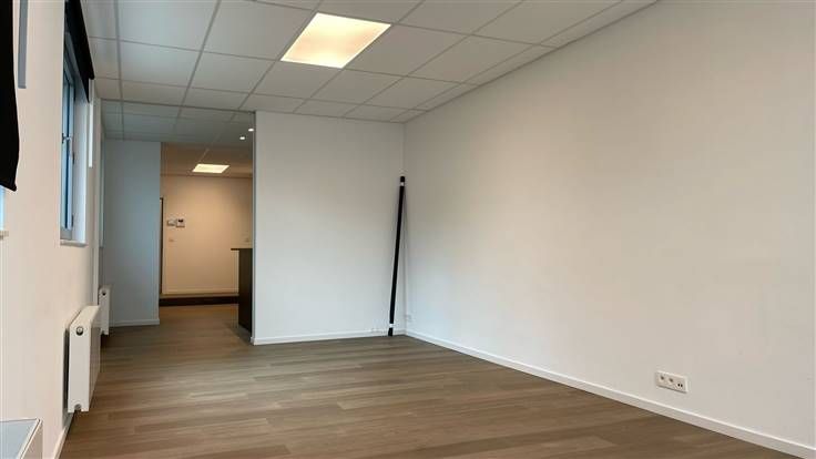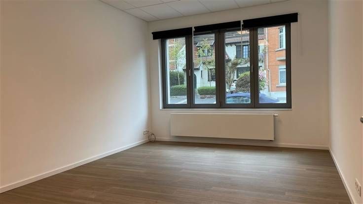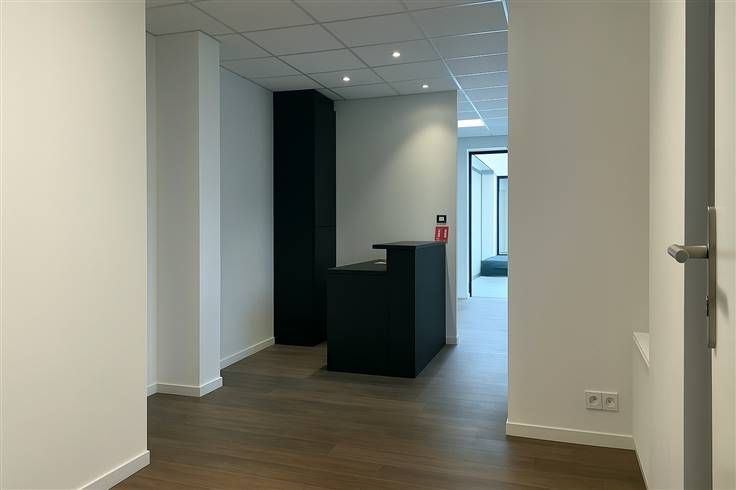 Dit volledig gerenoveerde kantoor van 75m² bevindt zich op de gelijkvloerse verdieping van een klein appartementsgebouw en omvat een inkomhal, twee grote ruimtes die gebruikt worden als kantoor en die ook als vergaderruimte kunnen gebruikt worden, een half ingerichte keuken en een toilet.