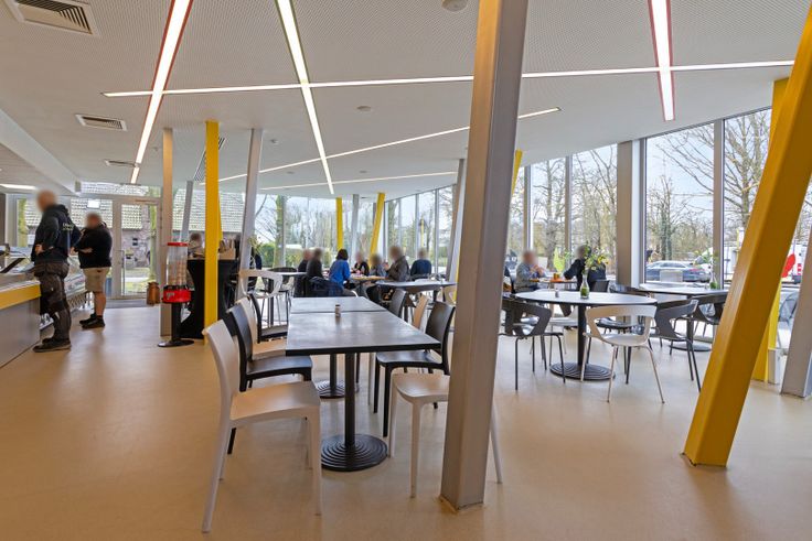 De eigenaars hebben dit pand in 2010 helemaal nieuw en energiezuinig gebouwd met een grote visibiliteit. Het gelijkvloers bestaande uit een polyvalente oppervlakte van 250m2 is naast frituur ook gemakkelijk in te richten als bakkerij, slagerij of een winkel.