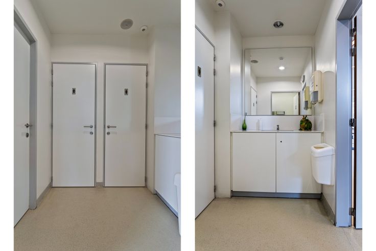 Op de eerste verdieping zijn er 2 energiezuinige appartementen met in totaal een oppervlakte van 170 m2. Ze beschikken elk over 2 slaapkamers, open keuken met alle voorzieningen, leefruimte, badkamer met inloopdouche, apart toilet, berging en zeer groot zonnig terras.