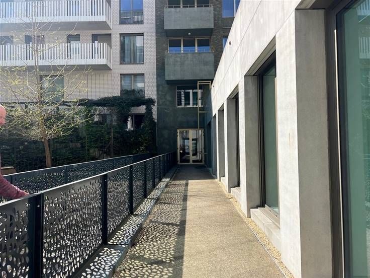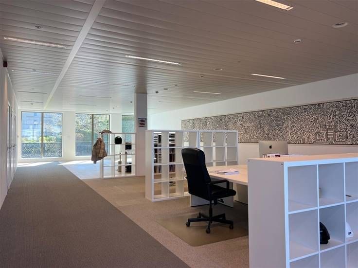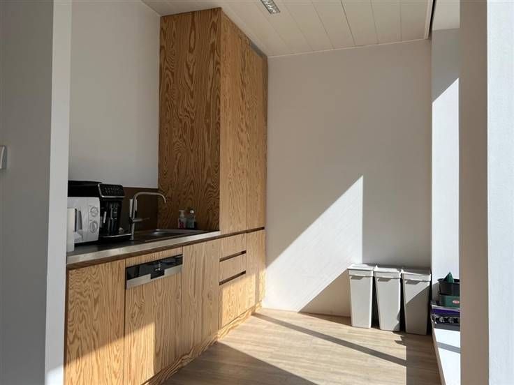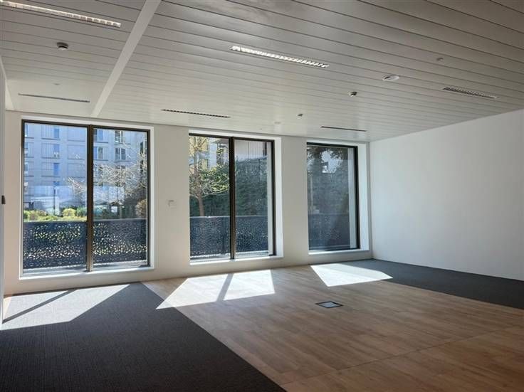 Deze instapklare kantoorruimte omvat een open werkruimte, kitchenette, sanitair en technische ruimte. Rechtstreekse toegang tot de buitenruimte, met connectie naar de beveiligde fietsenberging en ondergrondse parking. Twee parkeerplaatsen inbegrepen.