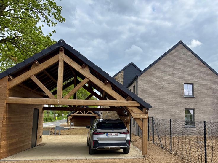 Carport 2 voitures avec possibilité de placer une borne de recharge, local vélos et rangements.