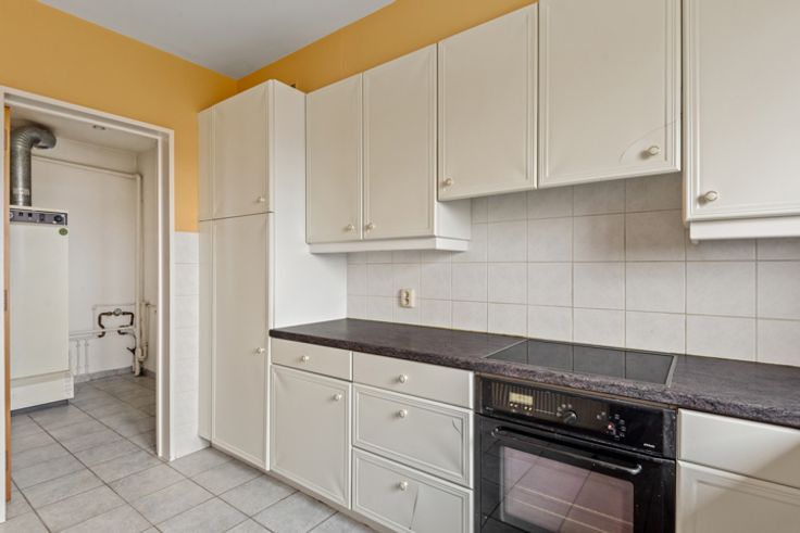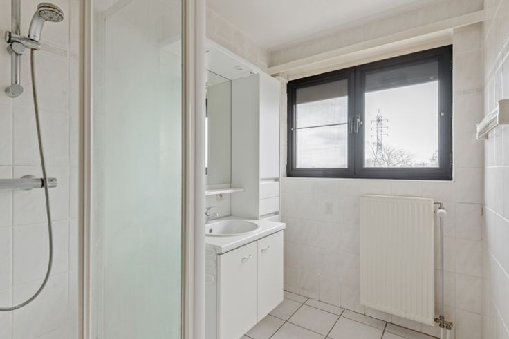 Dit appartementsgebouw dateert van 1997 en bevindt zich op fietsafstand van het centrum. Het hoekappartement zelf bevindt zich op op de tweede verdieping links (zonder lift). Via de inkomhal met ingemaakte kasten en apart toilet komen we vooraan in de woonkamer met veel lichtinval en een eerste noordwestterras. Aan de straatkant bevinden zich de ingerichte keuken met toestellen en de aanpalende wasplaats. De eerste en tevens kleinste van de slaapkamers met noordoostterras is centraal gelegen. De ingerichte badkamer met douchecel & lavabo én de tweede en derde slaapkamer, waarvan 1 met een derde zuidoostterras, zijn achteraan gelegen. De aanwezigheid van een videofoon, rolluiken en vliegenramen zijn enkele van de vele troeven. De ondergrondse kelder is in de prijs begrepen en de achteraan gelegen garagebox is verplicht mee aan te kopen mits een meerprijs van € 25.000. De maandelijkse provisie bedraagt € 135 voor o.a. de elektriciteit van de gemeenschappelijke delen, het individueel waterverbruik, de blokpolis, de syndicus én de spaarpot. Neemt u gerust contact op met ons kantoor om een plaatsbezoek in te plannen!