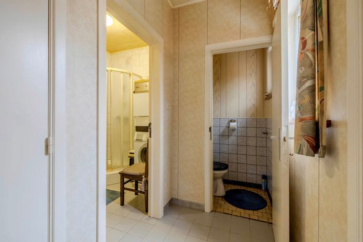 Indeling GLV: inkomhal; woonkamer en eetkamer; geïnstalleerde keuken; trap naar de kelder; tussengang; badkamer bevat enkele lavabo, douche en aansluiting WM/DK; apart toilet.