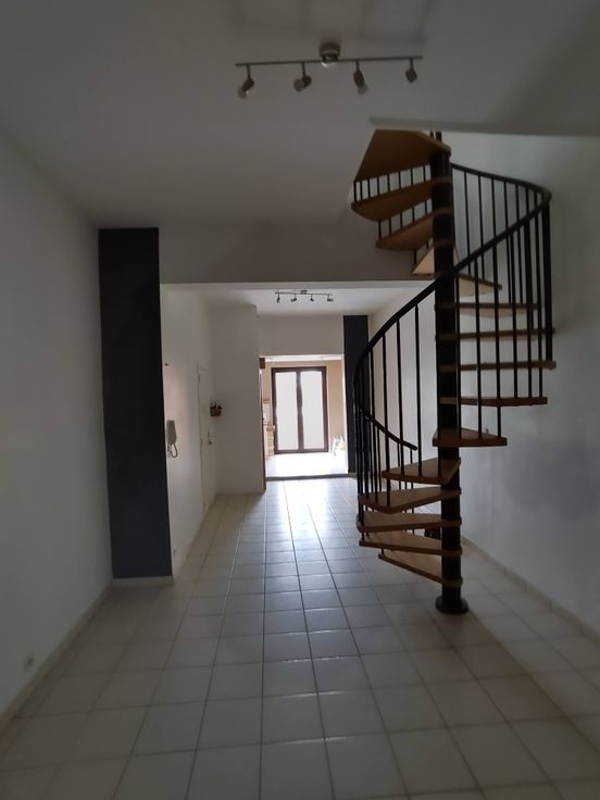 Un duplex (rez + 1) avec cuisine équipée, salle de douche, vaste séjour, 2 chambres et accès direct à un jardin arrière intimiste.