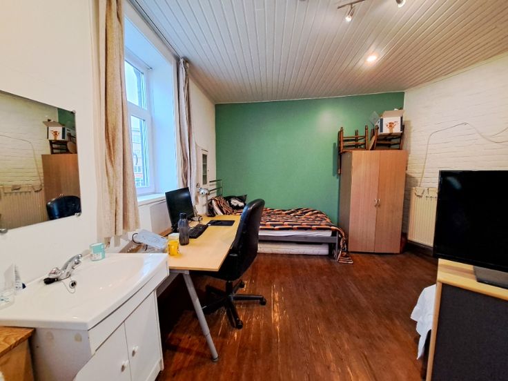 Gemeubelde studentenkamer gelegen op de 1ste verdieping in de Fritz de Beulestraat 82. Op wandelafstand is het UZ, een supermarkt en een tramhalte gelegen. In de kamer is er een lavabo met warm en koud water. Er is een bed, bureau, bureaustoel, boekenkast en kleerkast aanwezig. In het gebouw is er een gemeenschappelijke keuken met eetplaats, toilet, badkamer en plaats om fietsen te stallen. Te huur vanaf 01/09/2025 tem 30/08/2026 (huurcontract verlengbaar per jaar) enkel voor studenten, geen domicilie mogelijk.