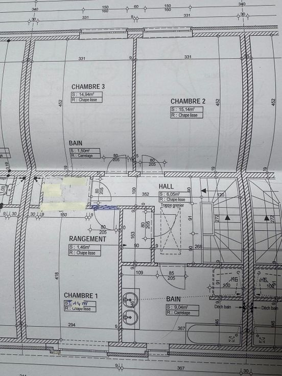Au premier étage, vous trouverez trois chambres confortables de 15 m², 15 m² et 14,5 m², une salle de bain familiale ainsi qu’un espace buanderie bien pensé.
