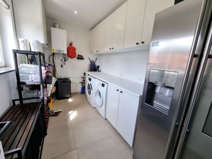 De volledig nieuwe keuken is uitgerust met moderne toestellen en de praktische berging met ingemaakte kasten biedt extra opslagruimte en dient tevens als wasplaats.