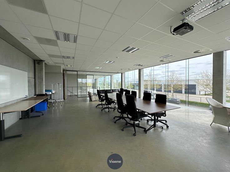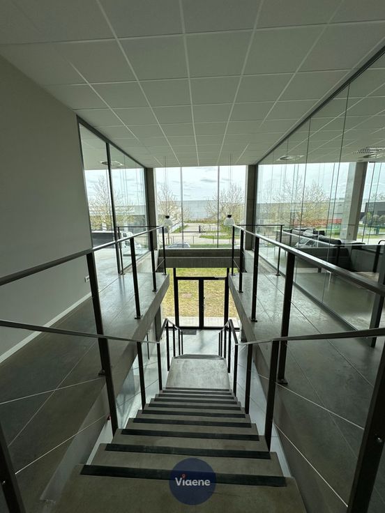 Kantoorruimte in een modern, recent gebouw - zeer gunstig gelegen in de industriezone, vlak aan de oprit van de autosnelweg - vlotte bereikbaarheid en voldoende parkeergelegenheid voor de deur - het bedrijfsgebouw, momenteel gedeeld door twee ondernemingen, biedt op het eerste verdiep links een kantoorruimte van 130m² - volledig instapklaar en klaar voor gebruik - grote, hoge ramen zorgen voor een overvloed aan natuurlijk licht - het kantoor is uitgerust met airconditioning - er is ook de mogelijkheid om een afzonderlijke vergaderzaal met beamer te gebruiken, ideaal voor professionele meetings of presentaties - sanitaire ruimte - geschikt voor boekhoudkantoor, internetbedrijf, HR bedrijf, dienstencheques,... - onmiddellijk beschikbaar