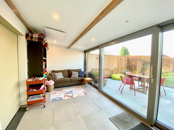 1ste verdieping: apart toilet en de lichtrijke leefruimte met open geïnstalleerde keuken.