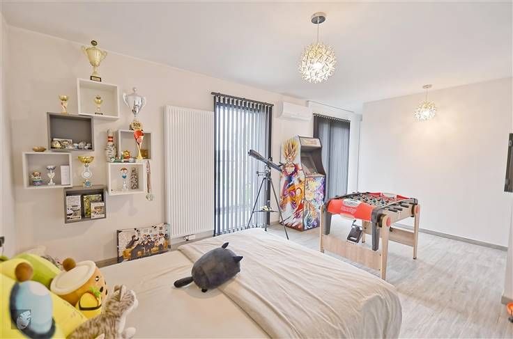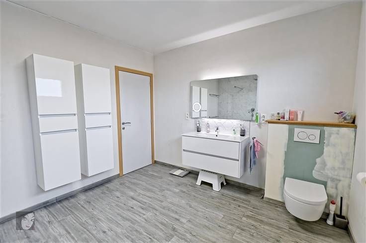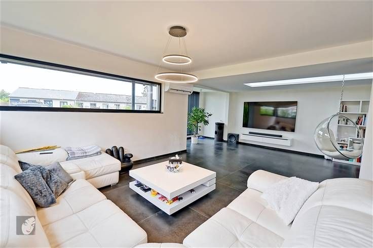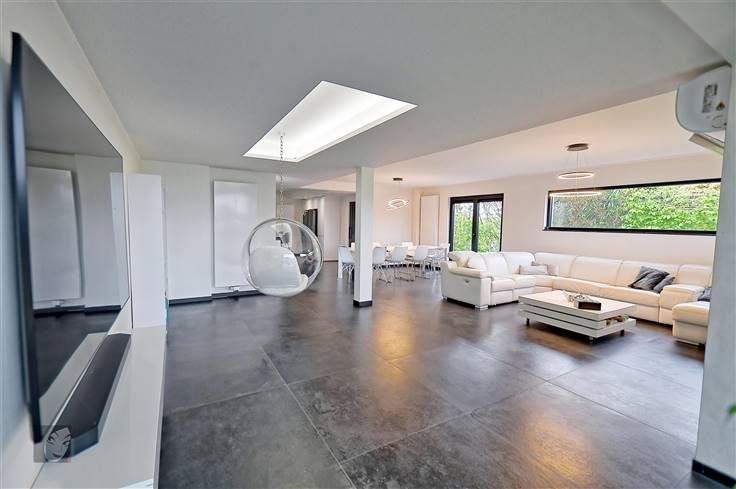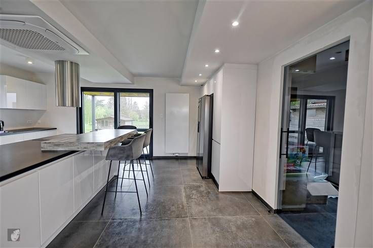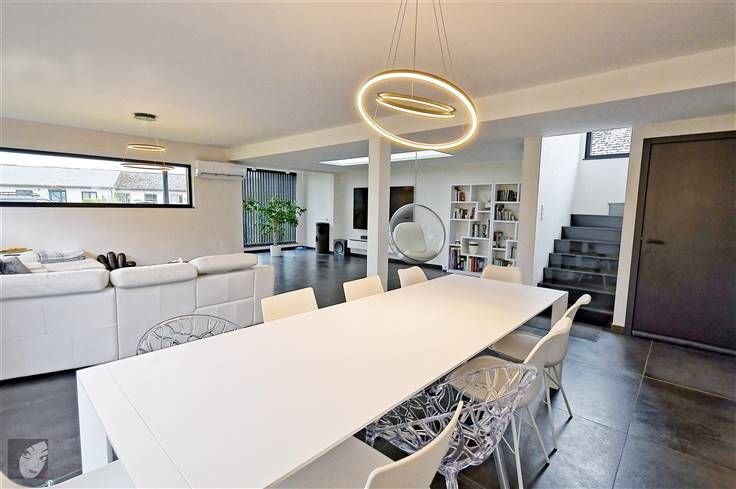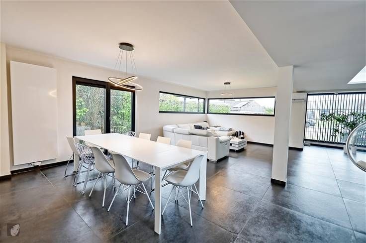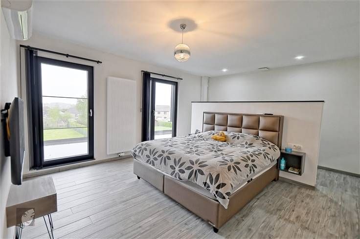 Sorry er is geen nederlandse vertaling beschikbaar. Très belle villa ultracontemporaine qui vous laissera sous le charme nous en sommes convaincus ! De plus, située dans un quartier résidentiel très agréable et assez prisé, au calme et à la fois proche de toutes les commodités, possibilité de réaliser de belles balades dans les environs. Maison hors du commun qui vaut la peine d’être visitée comprenant : hall d’entrée, WC indépendant + lave-mains, très grand séjour de +/- 94 m2 ultra-convivial avec cuisine équipée intégrée très lumineuse. A l’étage : hall de nuit, 2 chambres spacieuses et indépendantes avec chacune dressing + un bain dans la suite parentale, buanderie + rangement. Au 2ème étage : hall de nuit, 2 greniers dont on peut tirerprofit (salle-de-bains, dressing…) + 2 chambres à parachever donc possibilité d’obtenir 4 belles grandes chambres au total, voire 5 si vous souhaitez en diviser une grande en 2. Le tout sur un très beau terrain très bien orienté et avec une vue dégagée, parking pour minimum 4 véhicules, accès latéraux, terrasse carrelée et jardin. Infos utiles : 4 façades très moderne avec isolation (toiture, sols et murs), châssis DV en alu noirs, chauffage central au gaz en tank, climatisations réversibles, panneaux photovoltaïques (800 kw/h), compteur intelligent, spots intégrés, béton à chaque niveau, pré-câblage pour l’alarme, puits + groupe hydrophore, raccordement aux égouts, VMC, adoucisseur. Difficile à décrire en quelques lignes, qu’attendez-vous