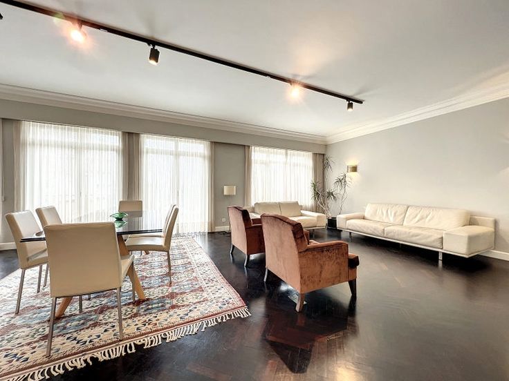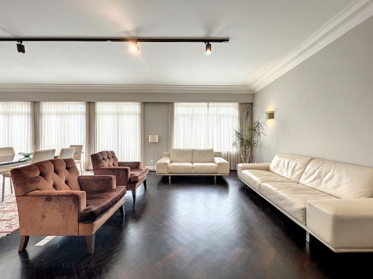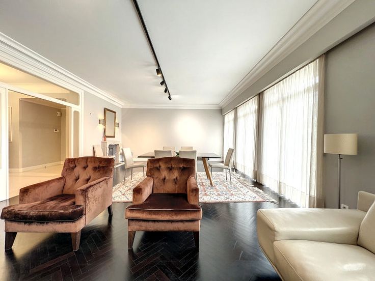 Prachtig appartement van 167 m² met hoogwaardige afwerking gerenoveerd in 2018 gelegen op de 3e verdieping s/9 van een luxe gebouw. Dit appartement bestaat uit een ruime inkomhal, grote woon/eetkamer (+-50m²), terras op het oosten aan de straatkant (+-10m²), volledig uitgeruste open keuken (Gaggenau), nachthal met gastentoilet en vestiaire, 2 slaapkamers (+-15m², +-18m²) met dressing, 2 douchekamers, waarvan één met sauna (infrarood en hammam), achterterras op het zuidwesten (+-7m²), bijkeuken, kelder (+-5m²) en 2 parkeerplaatsen voor 120€ elk. Diverse: parketvloer, dubbele beglazing, hoogwaardige materialen, externe rolluiken, alarmsysteem, conciërgeservice. Gelegen aan de prestigieuze Louizalaan, dicht bij het Terkamerenbos, w aar u tal van restaurants, winkels en openbaar vervoer vindt. waar u tal van restaurants, winkels, openbaar vervoer en snelle toegang tot de tot de Louizawijk, de ambassadewijk en de ULB. Voorziening voor lasten van 350€ inclusief gemeenschappelijke lasten + privé verwarming. verwarming. PEB C-. Beschikbaar op 01/08/2025. : Total énergie primaire: 25109 kwh/an, : 150 kwh/an, EPC certificaat nb., : 30 Kg Co2m²an