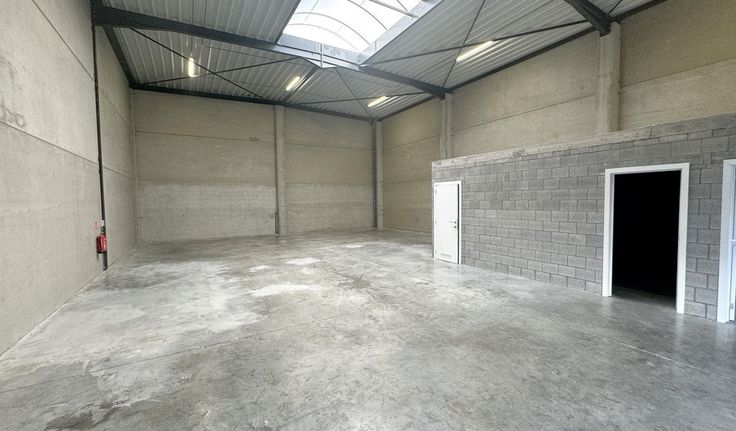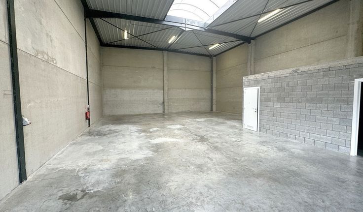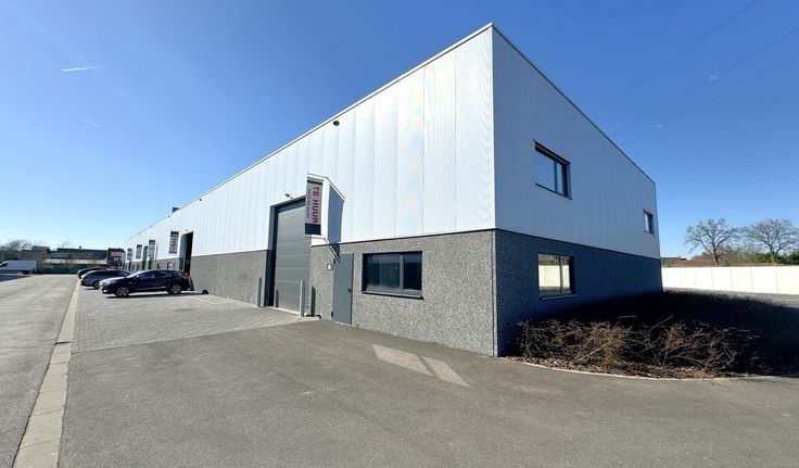 Specificaties: automatische sectionale poort (4m x 4,5m), 7m vrije hoogte, geïsoleerd steeldeck dak, centrale lichtstraat en rookkoepels, polybetonvloer (3T/m²), led-armaturen, keuken, apart toilet en handenwasser, 40A stroomvoorziening, ruime parkeergelegenheid voor de deur