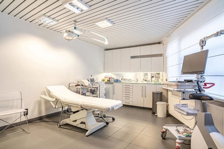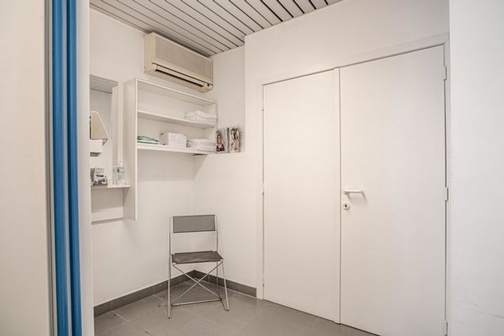 Op het gelijkvloers van dit gebouw vinden we een handelsruimte terug die momenteel gebruikt wordt voor medische doeleinden.