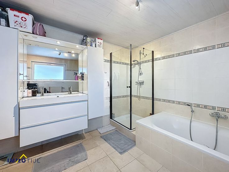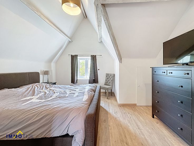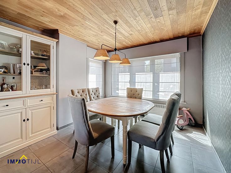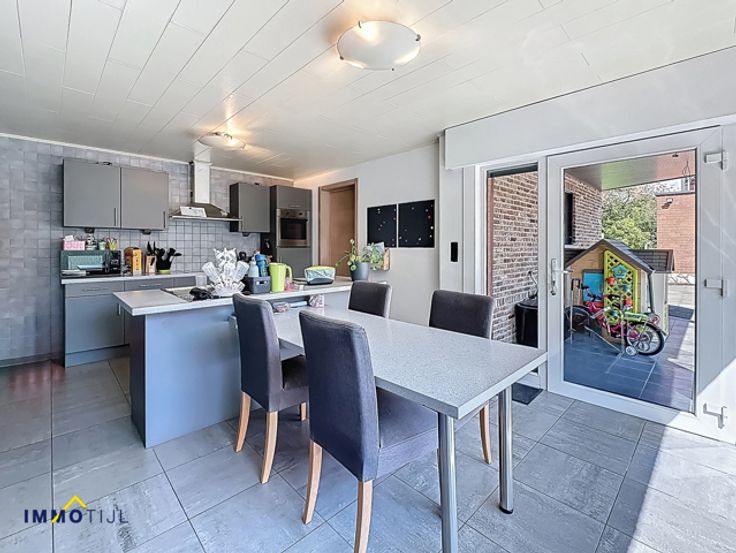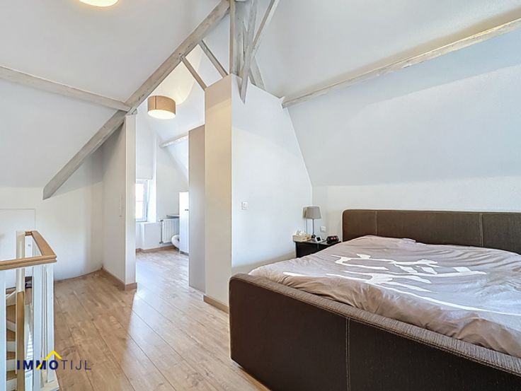 Deze goed onderhouden woning beschikt op het gelijkvloers over een inkomhal, woonkamer met eetplaats en een volledig ingerichte keuken. Aansluitend bevindt zich een berging/wasplaats met gastentoilet. Vanuit de berging is er toegang tot de grote badkamer, uitgerust met dubbele lavabo, ligbad en douche. De keuken geeft uit op het deels overdekt terras. De zuidwestelijke tuin is onderhoudsvriendelijk en beschikt over een tuinberging. Op de eerste verdieping bevinden zich twee slaapkamers, een apart toilet en een extra kamer, geschikt als bureau of hobbyruimte. De tweede verdieping, bereikbaar via een vaste trap, biedt een prachtige masterbedroom met dressing. Een extra troef is de kelder, ideaal als opbergruimte. Voor en naast de woning ligt een brede oprit met plaats voor meerdere wagens. Tevens is er een afzonderlijke garage. De woning is voorzien van hoogrendementsbeglazing (deels met rolluiken en vliegenramen), zonnepanelen en een centrale verwarming op aardgas (condensatieketel van 2021). Dit resulteert in een laag energieverbruik en een gunstig EPC! Ontdek de troeven van deze woning alvast via onze virtuele rondleiding. De ligging in een doodlopende straat zorgt voor rust en weinig verkeer. Tegelijk is het centrum van Moorsel vlot bereikbaar, met scholen, bakker, apotheek en andere voorzieningen op wandelafstand. Interesse? Contacteer ons voor meer informatie of een bezoek via tomvdb@immotijl.be of 0485 75 71 17.