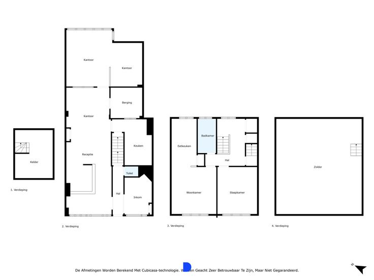 Inkomhal, wachtruimte, kantoorruimtes met op maat gemaakte bureau's, kitchenette, berging en kelder.