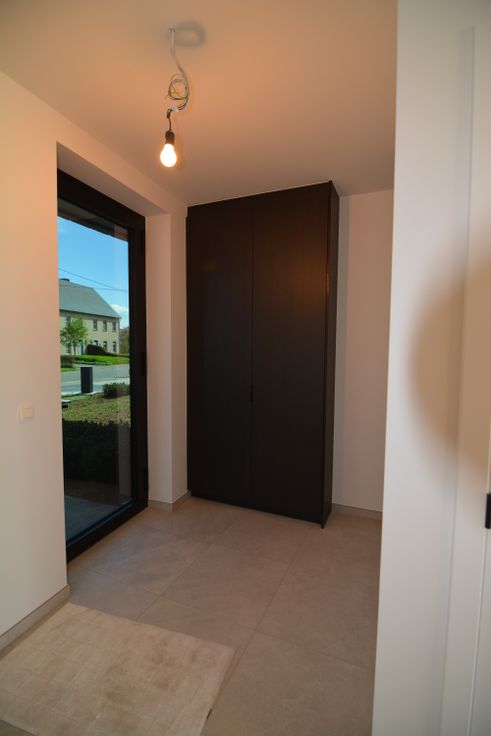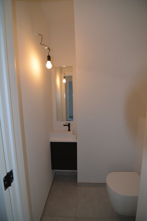Ruime nieuwbouwwoning met tuin bestaande uit, op het gelijkvloerse een inkomhal met vestiaire en gastentoilet, volledige uitgeruste open keuken, ruime woonkamer met veel lichtinval, bureau en berging/wasruimte. Op de eerste verdieping, een nachthal, 2 badkamers met elk een inloopdouche en 4 slaapkamers. Op de tweede verdieping, een grote slaapkamer en technische ruimte. Ruime tuin met terras, tuinhuis en carport. Woning is instapklaar en wordt volledig geschilderd opgeleverd !