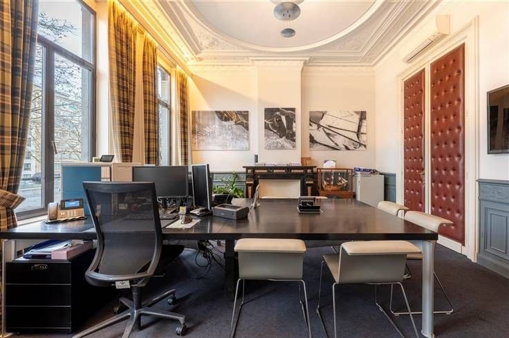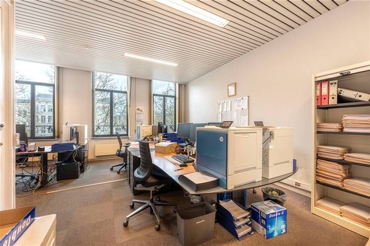 Kantoor te koop langsheen de Amerikalei in Antwerpen, vlakbij Het Vlinderpaleis. Het pand geniet van een uitstekende bereikbaarheid zowel met de wagen als het openbaar vervoer. Het gebouw bestaat uit vier bovengrondse verdiepingen (ca. 448 m²) en een kelderverdieping (ca. 91 m²). De huidige indeling voorziet op heden een mix van landschapskantoren en vergaderruimtes of afgesloten kantoren.