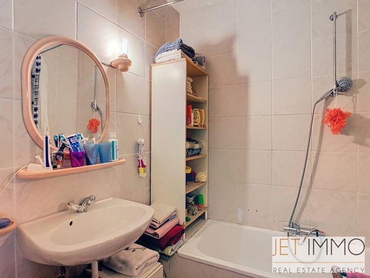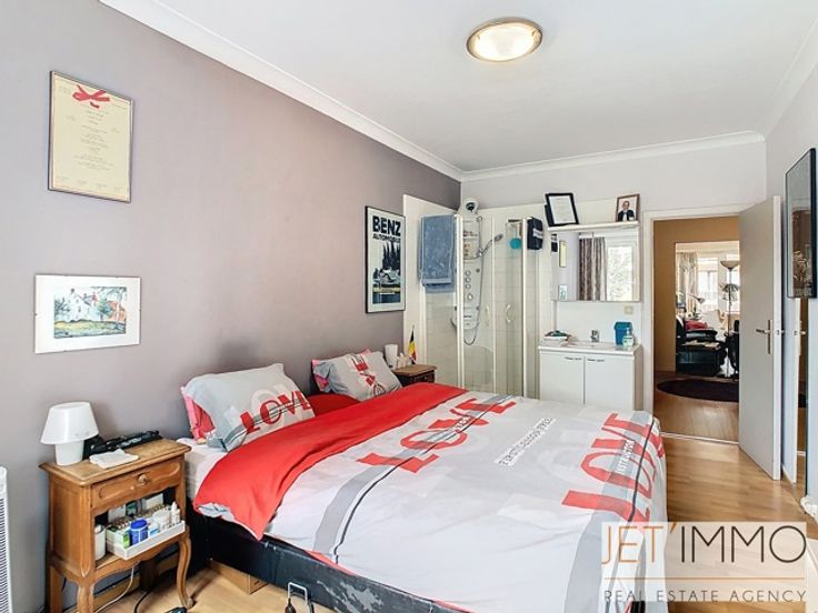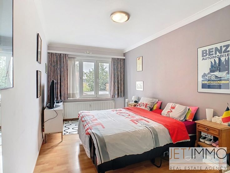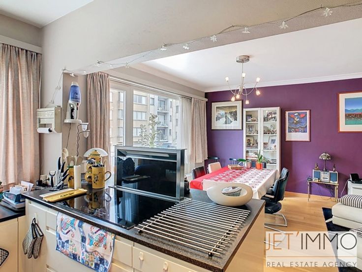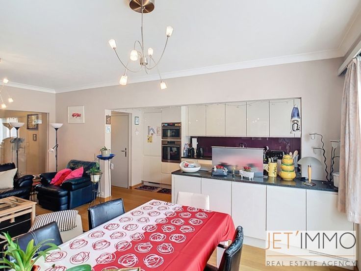 Aantrekkelijk appartement met 2 slaapkamers en garage Deze mooie doorloopflat bestaat uit een hal van +/- 6 m², een woonkamer met open keuken van +/- 25 m², twee slaapkamers, de eerste van +/- 14,5 m² met een doucheruimte en de tweede van +/- 12,5 m² met toegang tot een balkon, een badkamer van +/- 3,5 m² en een apart toilet. Het appartement beschikt over een garagebox aan de achterzijde van het gebouw. De garagebox is te koop voor €35.000. PEB-certificaat D; verbruik per m²: 334 kWhEP/m²/jaar; CO²-uitstoot: 7734 kg/m²/jaar; PEB-label: “D”. (Beschrijving afgegeven onder voorbehoud van het verkrijgen van planningsinformatie en uitsluitend ter informatie en niet contractueel bindend. Aanbiedingen zijn onder voorbehoud van vergissing, voorafgaande verkoop, prijswijziging of weglating. De prijzen zijn exclusief notariskosten, registratierechten en/of BTW ten laste van de koper). De woning wordt verkocht zonder accessoires. Afmetingen worden alleen ter informatie gegeven.