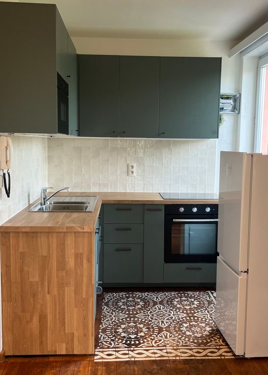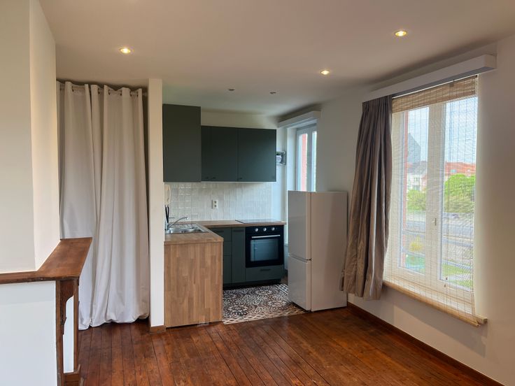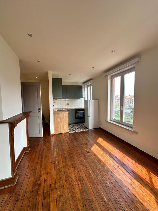 Aangenaam appartement 50 m2 met houten vloer, volledig nieuw geschilderd.