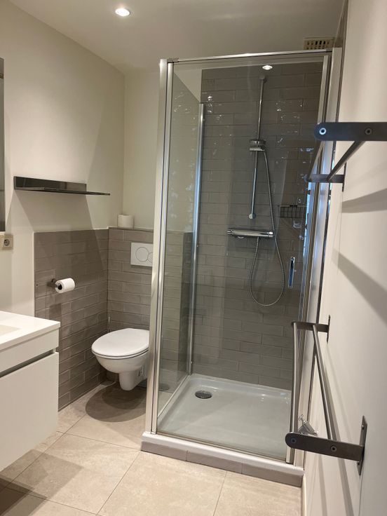 Living met volledig nieuw ingerichte keuken met inductie kookplaat, dampkap, oven, dubbele spoelbak, microgolfoven, vaatwasmachine, frigo/diepvries. Slaapkamer. Nieuwe badkamer met douche, wc en lavabomeubel. Berging, waar wasmachine en evt droogkast kan staan.