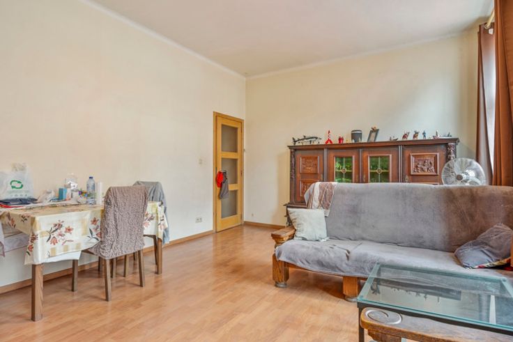 Bij het betreden van dit appartement word je verwelkomd in een woonkamer, waar grote ramen zorgen voor een overvloed aan natuurlijk licht en een aangename sfeer creëren. De deels geïnstalleerde keuken beschikt eveneens over veel licht. Achter de keuken bevindt zich een berging, ideaal voor extra opslagruimte. De twee ruime slaapkamers zijn eveneens voorzien van grote ramen, waardoor ook hier het daglicht rijkelijk binnenvalt. De badkamer is uitgerust met een douche, toilet en lavabo. Interesse, aarzel zeker niet ons te contacteren.