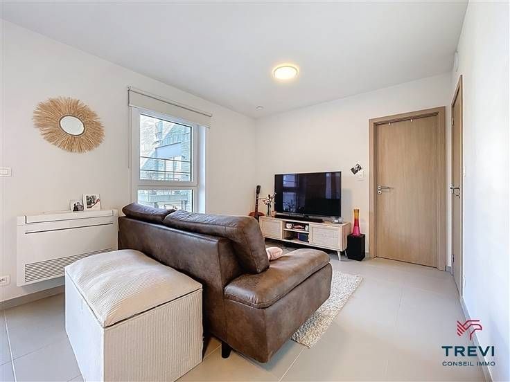 Sorry er is geen nederlandse vertaling beschikbaar. Quartier des Confluents, bel appartement neuf lumineux au 2e étage d'une jolie résidence de standing avec ascenseur. L'appartement propose de beaux espaces clairs, une chambre et une belle terrasse. L'appartement se compose d'un sas d'entrée vers le beau séjour carrelé de 30 m² et sa cuisine entièrement équipée vers la jolie terrasse. Hall de nuit vers la belle chambre de 13 m² et sa salle de douche composée d'une cabine de douche et d'un meuble évier. Buanderie. Wc séparé. Placards.Double vitrage PVC. PEB A . Parking et cave en option. Faire offre à partir de 190.000 €. Vente sous régime tva. Infos et visites au 02/355.50.55.