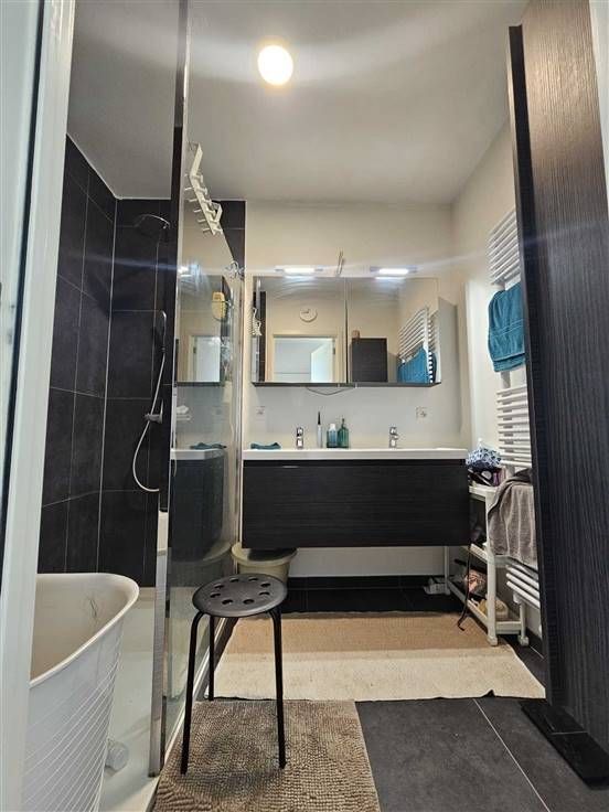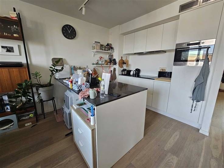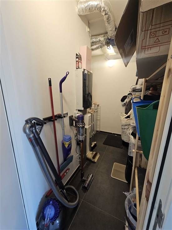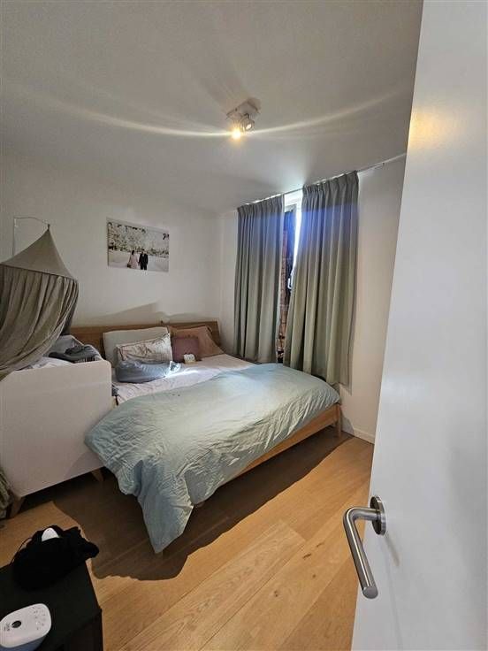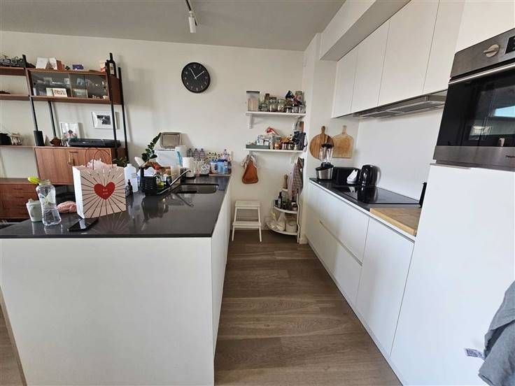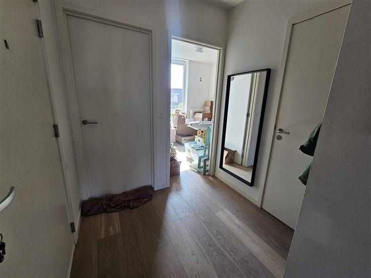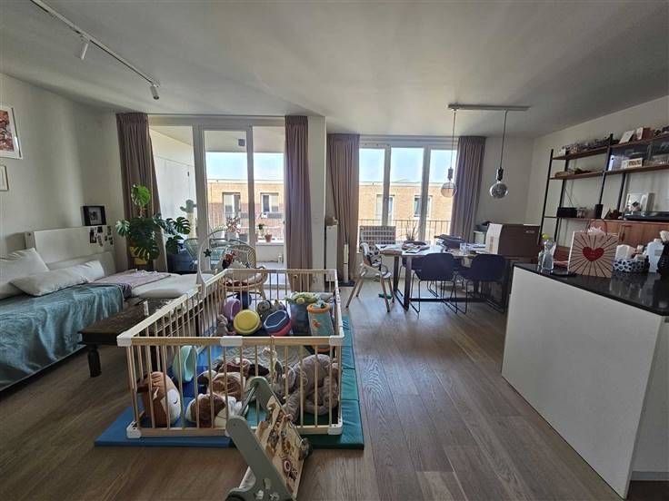 Het Groen Kwartier te Antwerpen: een uniek stukje groen in het centrum van de stad. Dit recent nieuwbouwappartement op de 2de verdieping heeft 2 slaapkamers, een ruime living met leef- en eetruimte en keuken (7,22 m²), badkamer, aparte toilet, berging en terras! Bij het appartement hoort ook een autostaanplaats (P 37) en een kelderberging (A 25). Instapklaar! Indeling: hal: 2,38 * 2,07 = 4,93 m² badkamer: 2,38 * 1,82 = 4,33 m² toilet: 0,95 * 1,5 = 1,43 m² berging : 0,9 * 2,89 = 2,6 m² slaapkamer: 2,77 * 4 = 11,19 m² slaapkamer: 2,89 * 2,77 = 8 m² leefruimte en eetruimte: 7 * 5, 77 = 40,5 m² keuken (7,22 m²) open terras: 2,73 * 2,1 = 5,73