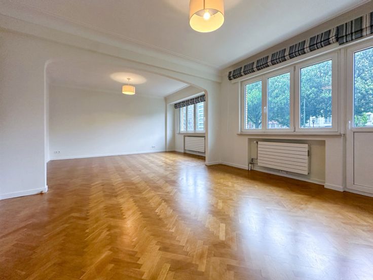 ETTERBEEK, vlakbij metrostation Pétillon en instellingen, ruim en licht APPARTEMENT (2bed/1bad) van ±100 m². Gelegen op de 1ste verdieping, bestaat het uit een inkomhal die toegang geeft tot een aangename woonkamer van ±35 m² met balkon, ingerichte keuken en balkon, 2 slaapkamers (±18-±12 m²), badkamer, apart toilet en wasruimte. Kelder. Mogelijkheid tot dubbele parkeerplaatsen binnen en buiten, alsook laadpaal +120€/maand. Voorzieningen voor lasten: +200€ (communs, verwarming, warm water). EPC C. Te ontdekken bij L&P.