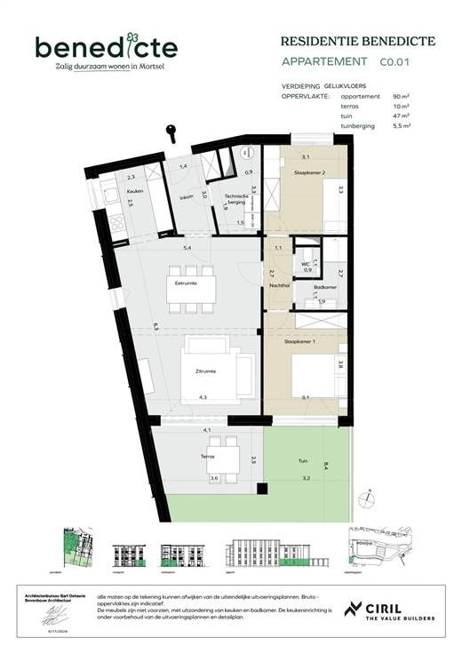 Dit gelijkvloerse appartement is gelegen aan de Sint-Benedictusstraat in Mortsel binnen het energiezuinige nieuwbouwproject Benedicte: een groene thuis voor iedereen die waarde hecht aan duurzaamheid, een natuurlijke omgeving en zalig wooncomfort. Benedicte is een toekomstgericht en duurzaam BEN-woonproject rondom een nieuw groen en autoluwe park in Mortsel. Alle woningen en appartementen halen minstens EPC label A. Bovendien zijn de gebouwen energiepositief: ze verbruiken dus minder energie dan ze produceren. Dit appartement heeft een oppervlakte van 90m², heeft een tuin van 47m² en terras van 10m² met zuid oriëntatie, en twee slaapkamers. Bijzonderheden - koolstofneutrale massieve houtbouw (CLT) - energiezuinige BEN-woningen - maximaal behoud van het bestaande groen - gelegen in een autoluw park - 100% hernieuwbare energie - ondergrondse autostaanplaats en kelder bij aan te kopen Ben jij geïnteresseerd in dit nieuwbouw appartement te koop in hartje Mortsel, ben je op zoek naar ander vastgoed of wens je de waarde van jouw eigendom te kennen? Dan ben je bij BOLT immo aan het juiste adres! Wij helpen jou graag verder. Weet dat wij u met plezier helpen voor een vrijblijvende (EN GRATIS!) SCHATTING, mét tips en advies. U kan ons contacteren op het nummer 03 568 68 06 of langskomen in onze kantoren te Wilrijk of Antwerpen.