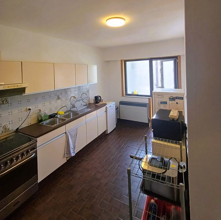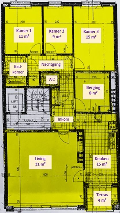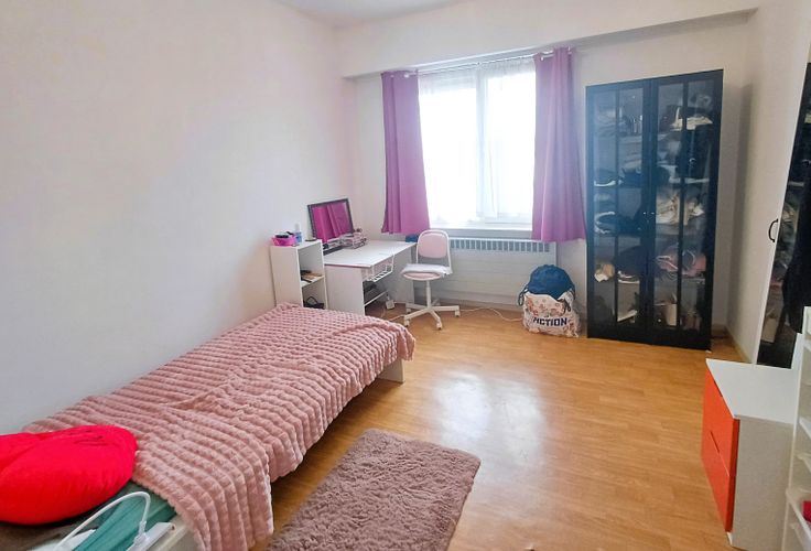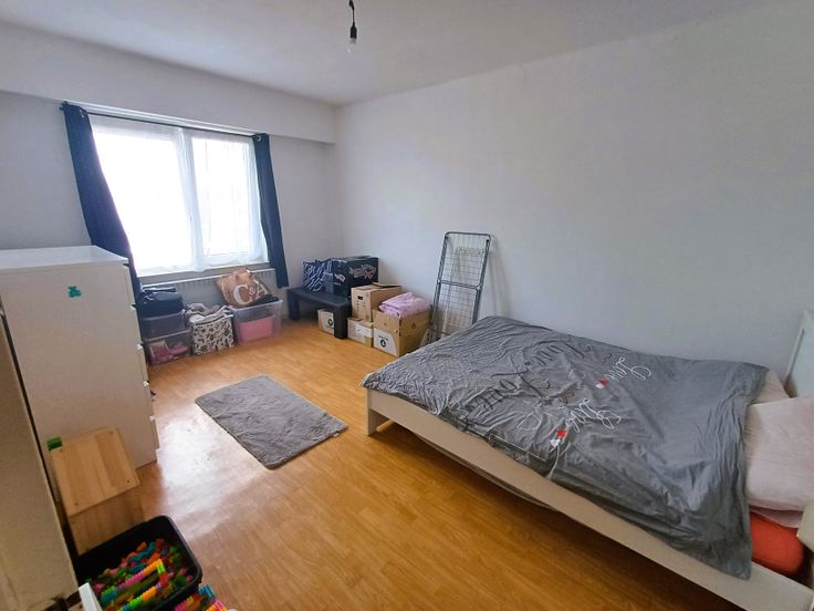 Ruim appartement op 2de verdieping met 3 slaapkamers, living, keuken met zonnig terrasje, grote berging, apart toilet, badkamer met ligbad. Kleine garage staanplaats en kelderberging. Lift. Gunstige EPC B-131.