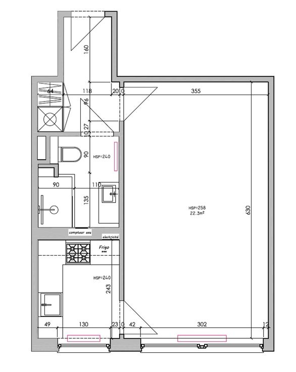Pièce principale lumineuse.