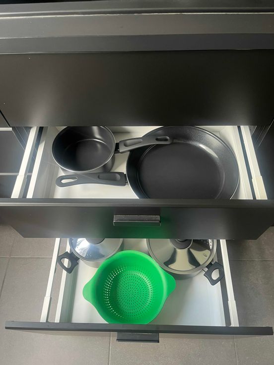 - vaisselle, casseroles, ustensiles de cuisine, machine à café,....