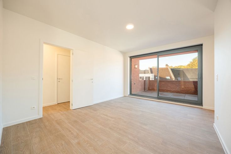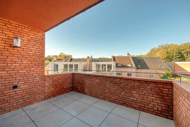 Dit dakappartement op de tweede verdieping van de toekomstige residentie “De Post” wordt gekenmerkt door een grote leefruimte in twee delen: een zitplaats en apart een eetplaats met halfopen keuken. Vlak naast de inkom is ook een handige vestiaire-nis. In de zitplaats zorgt een erker voor licht en zicht op de Kloosterstraat en de 'tornadotoren'. Het terras is geschikt voor een tafeltje met stoelen en bevindt zich op het zuidwesten met zicht op de binnentuin. De technische berging naast de keuken is groot genoeg om niet alleen plaats te bieden aan de warmtepomp en wasmachine-droogkast maar ook aan stockage. De grote slaapkamer heeft eveneens een erker en is bereikbaar via de nachthal die toegang biedt aan de andere slaapkamer en de ruime badkamer en apart wc. Het project wordt opgeleverd in september 2024. De afwerking omvat standaard vloerverwarming, zonnepanelen en warmtepompen. De door Alta Build bestelde opties bovenop het standaardlastenboek, inbegrepen in de verkoopprijs, bevatten onder andere een keuken van 16.000 € + BTW, geleverd door Krijnen Keukens. In de kelderverdieping dient minimum één parking aangekocht te worden. De grote gemeenschappelijke fietsenstalling is inbegrepen in de verkoopprijs. Onder bepaalde voorwaarden kan deze nieuwbouw met 6% BTW gefactureerd worden.
