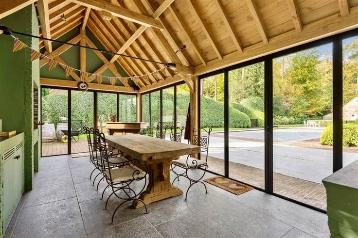 PRACHTIGE LANDELIJK-MODERNE LUXE VILLA OP TOPLOCATIE GELIJKVLOERS: 1e Inkom 23m² op Bourgondische Dal, Gastentoilet met Hw, ingem. kastenwand 2e Inkom 12m² op terra cotta, kastenwand, WC + Hw Waskamer 11m² ingem. kasten, WC en Hw. Woonkamer 60m² op parket, traditionele haard. TV-Kamer 36m² met gashaard, HiFi aansluiting. Prachtige Keuken 55m² Maatwerk Landelijk-Moderne Portugese Barok, Gashaard, bijkeuken en berging. Prof. toestellen V-ZUG: Combi-Steam, Combi-Air, Digitaal 5-Pits Gasvuur. Quooker, Vaatwasser F&P. Zomer Keuken 28m² blauwe steen, Smeedijzer ramen, vloerverwarming, Open (BBQ) haard, dubbele koelkast, Vaatwasser MIELE. Garage 35m² 2x automatische poort. Kelder 22m² wijnkelder en berging. VERDIEPEN: Poly kamer 35m² met privé trap. Overloop 33m² met ingem. kastenwanden. Master van 50m² op parket + Luxe dressing met kastverlichting. High-End Badkamer met bad, regendouche, 2x lavabo. Slaapkamers 29m² + 29m² + 23m² op parket met dressing. Eigen douchekamer met regendouche, volledig betegeld, 1x lavabo en handdoekdroger. Zolder 55m² op parket + tech. ruimte 39m². PRACHTIGE PARKTUIN: Zwembad 14M X 6M en Buitendouche. Grote Terrassen, Eiken bijgebouw: douchekamer, WC, tech. zwembad, tuinberging, EXTRA TROEVEN: +Design LED-verlichting +Camerabewaking +Binnen en buiten alarm +Domotica NHC +Geboorde en regenwater put +Waterontharder +Industrieel Ventilatiesysteem +Gunstige Toplocatie +High-End Materialen
