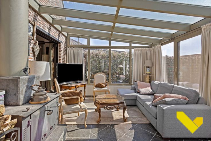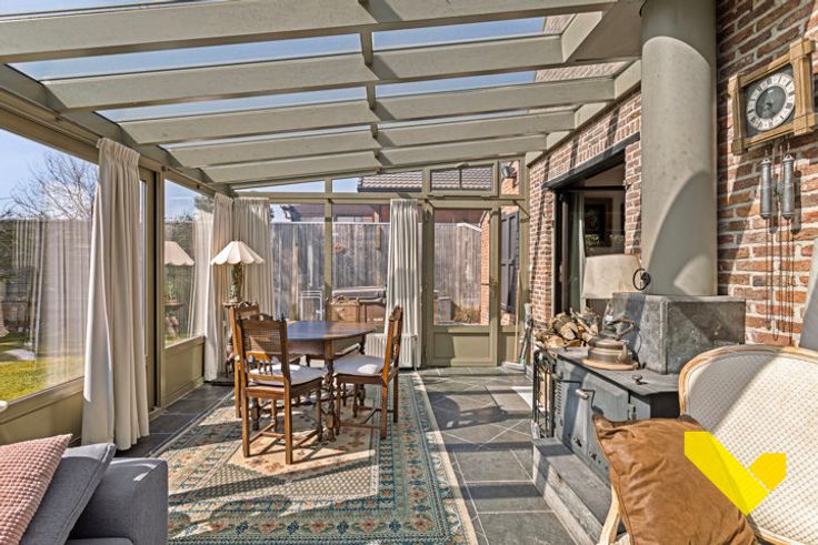 Prachtige veranda met houtstoof en zicht op de tuin