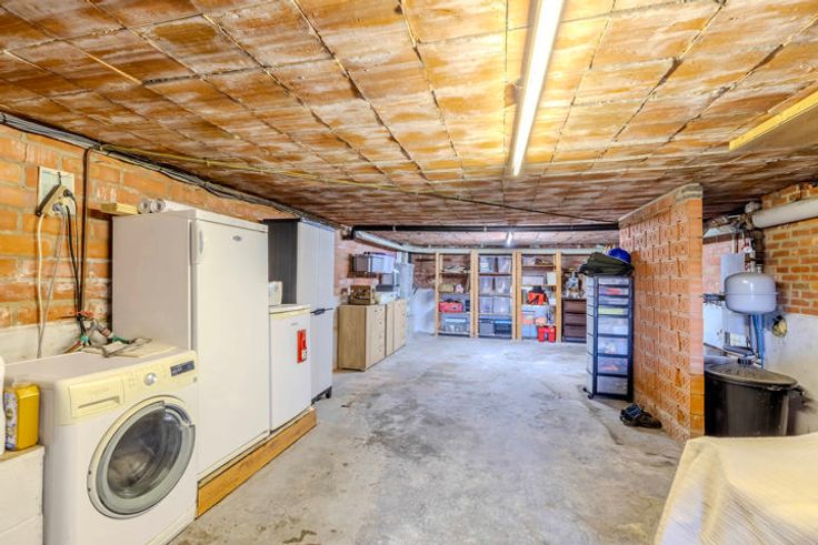 Volledig onderkelderd en voorzien van garagepoort (droge kelder).