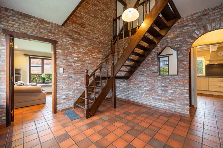 Ruime gezinswoning met 5 slaapkamers, 2 badkamers en een inpandige garage. Uitgerust met zonnepanelen en een HR-houtkachel. Gelegen op een rustig en groen perceel van 1075m² vlakbij de dorpskern van Gierle en op 10 min. van Turnhout. EPC Label-C (218 kWh/m²) Via de inkomhal betreden we de woning waar onmiddellijk het volume opvalt. Vanuit de inkomhal is er toegang naar een 1ste slaapkamer/bureau alsook naar de leefruimte. Ook de keuken, kelder en gastentoilet zijn van hieruit te bereiken. De leefruimte heeft een L-opstelling en beschikt over een zit-en eetgedeelte. Vanuit de leefruimte is er zicht op de tuin en de HR-houtkachel maakt het hier gezellig vertoeven in de wintermaanden. De keuken sluit aan op de eetruimte en werd recent nog volledig vernieuwd en uitgerust naar hedendaagse normen. Ook de keuken kijkt op haar beurt uit over de tuin. Vanuit de keuken is er aansluiting naar de achterinkom met spoelbak, aansluitend de wasplaats/technische ruimte, een extra berging, de inpandige garage met kantelpoort en als laatste de douchekamer. De handige douchekamer is ook vanuit de tuin toegankelijk. Eenmaal op de 1ste verdieping zijn er momenteel 4 slaapkamers voorzien met de mogelijkheid om er nog 1 extra te creëren.  Benieuwd naar de ruime kelder en de prachtige tuin? ga naar https://www.vansweevelt.be/te-koop/huis-lille-gierle-turnhoutsebaan-49?detail=1&0=