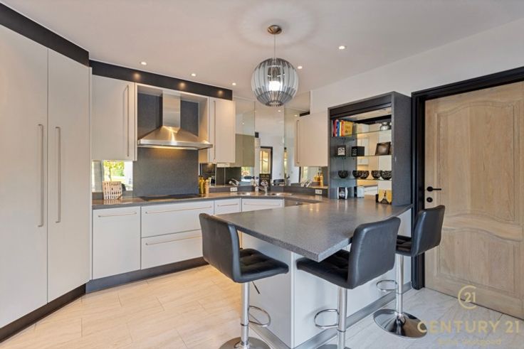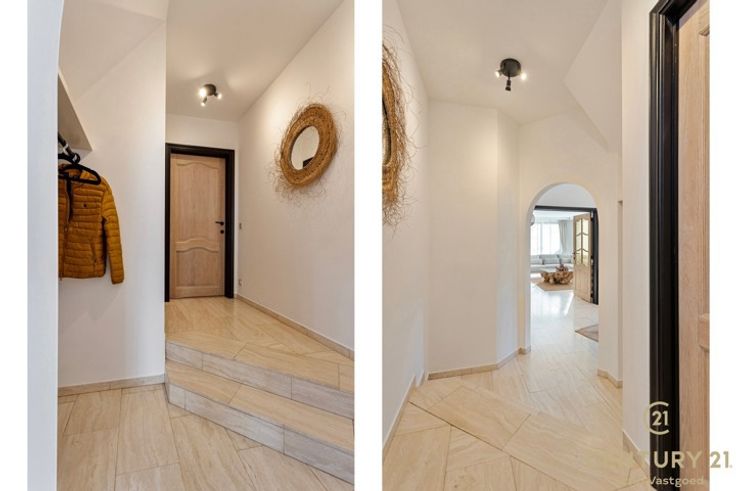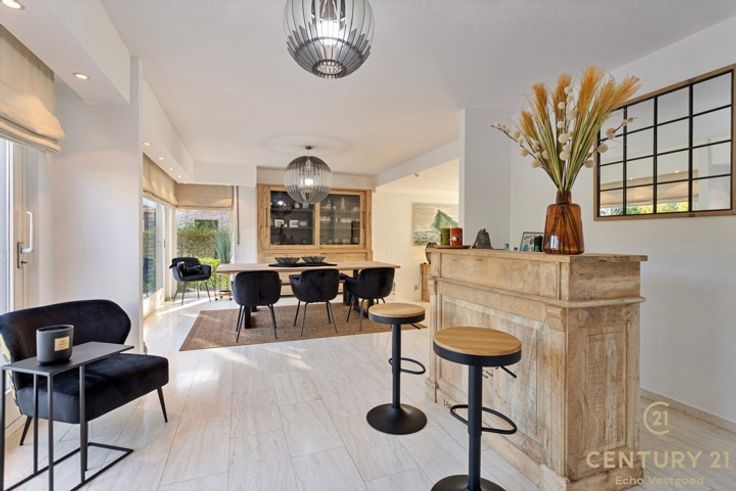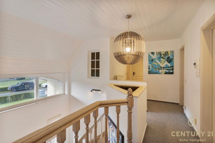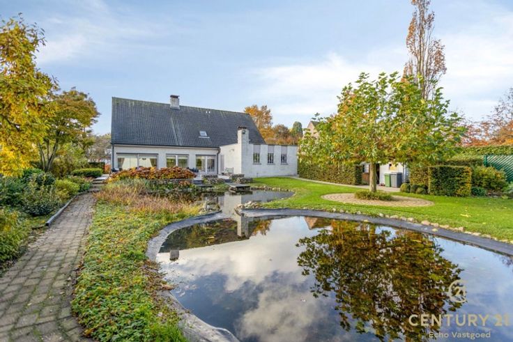 Uiterst rustig gelegen royale villa met fraai aangelegde tuin op ca. 2420m² Imposante inkomhal met vestiaire en gastentoilet. De inkomhal geeft ook meteen toegang tot het bureau. Via dubbele eikenhouten deuren komt u in de ruime L-vormige woonkamer op natuursteen met vloerverwarming, een sfeervolle houthaard en een panoramisch zicht op de aangelegde tuin alsook het zonneterras. Geïnstalleerde keuken met gezellig ontbijthoekje, praktische bergplaats met aansluiting voor de was- en droogmachine. Nachthal met praktische ingemaakte kasten, master bedroom, badkamer met ligbad, douche en dubbele wastafel. Dubbele inpandige garage met automatische paneeldeur. Via de prachtige eiken trap komt u op de overloop van de slaapverdieping waar zich 4 bijzonder ruime slaapkamers, nachttoilet, kleedkamer en de badkamer liggen. De geïsoleerde zolder is te bereiken met een schuiftrap. Buiten: Mooi aangelegde tuin die geniet van volledige privacy met groot (nieuw aangelegd) zonneterras ca. 85 m²! handig beregeningssysteem, 2 tuinbergingen, mooie vijverpartijen. Bijzonderheden: - Natuurstenen vloeren - Eiken trap en binnendeuren - Dubbele inpandige garage - Elektrische rolluiken met tijdschakelaar - Deels vloerverwarming - Nieuwe zonnepanelen geplaatst 2023 - CV vervangen 12/2023
