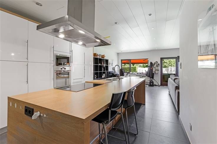 Deze opbrengsteigendom, bestaande uit 3 appartementen met 3 garages, vinden we terug op de Neerstraat in het centrum van Tessenderlo. De markt van Tessenderlo met al zijn winkels, scholen, horeca en openbaar vervoer bevindt zich op wandel- en fietsafstand. Aan de overkant van de straat is er dokterspraktijk, een tankstation en wat verderop een grote buiten speeltuin. De op- en afrit van de E313 bevinden zich op slechts enkele minuutjes rijden. Deze leuke appartementsblok bestaat uit 3 appartementen en een zolderverdieping. Op de gelijkvloerse verdieping zijn er twee appartementen. Het gelijkvloers appartement aan de voorzijde van het gebouw is 83,49m² en bestaat uit; - Inkomhal - Woonkamer met open keuken (40m²) - 2 ruime slaapkamers (15m² en 11,40m²) - Badkamer (bad en lavabo) - Apart toilet - Bureauruimte (12m²) - Berging - Terras De berekende energiescore bedraagt 285 kWh/m²jaar (label C). Hier woont een trouwe huurder die momenteel huurt aan een huurprijs van 600,00 euro per maand. Het gelijkvloers appartement aan de achterzijde van het gebouw is 117,06m² groot en bestaat uit; - Inkomhal - Woonkamer met open keuken (57m²) - Wasplaats - Apart toilet - Badkamer - 2 ruime slaapkamers (11,90m² en 14,40m²) - Tuin De inrichting is zeer modern en de berekende energiescore is 420 kWh/m²jaar (label E). Het appartement is momenteel ook verhuurd. Op de eerste verdieping is er één appartement. Het heeft een oppervlakte van 85,13m² en bestaat uit: - Inkomhal - Woonkamer (3
