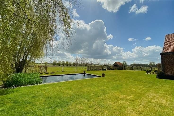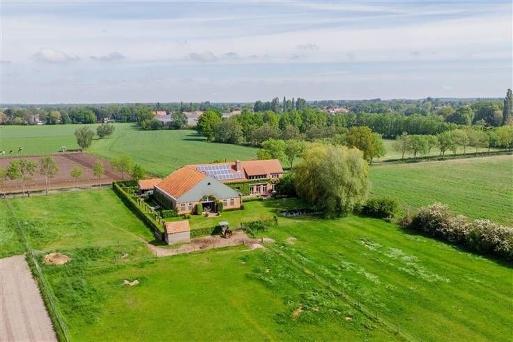 Luxe woonboerderij "Ten Doeselt" – landelijk wonen in stij. l Deze authentieke, volledig gerenoveerde hoeve biedt 320 m² woonruimte + 373 m² aan schuren, stallen en zolders, op een prachtig perceel van ca. 8.257 m². De zuidgerichte tuin met zwemvijver en panoramisch zicht op de akkers maakt dit een unieke woonbeleving. Gelijkvloers Via een marmeren entree met glazen deuren bereik je de riante leefruimte op eiken visgraatparket. De hoge plafonds, open haard en grote raampartijen zorgen voor een open en lichtrijke sfeer. De luxe marmeren keuken met ontbijthoek is volledig uitgerust. Aparte bijkeuken/wasplaats. Daarnaast een grote atelier/bureauruimte (90 m²) met open haard, inbouwkasten en badkamer ensuite – perfect als gastenkamer. Verdiepingen Op de eerste verdieping: nachthal, 3 slaapkamers en een luxe badkamer in natuursteen met ligbad, toilet en dubbele lavabo. De tweede verdieping biedt een ruime masterbedroom met dressing. Bonusvleugel De rechtervleugel omvat een grote schuur met 3/4 paardenboxen, sauna, zadelkamer en een bergruimte, plus een ruime zolder met diverse mogelijkheden. Tuin & ligging De fraai aangelegde tuin heeft een terras, zwemvijver, fruitbomen, 2 paardenweiden en een dubbele carport. Gelegen nabij Essen en de grens met NL. Extra’s: zonnepanelen (certificaten tot 2028), vloerverwarming, rolluiken en ingemaakte kasten. meer info en foto's: www.allure-re.com