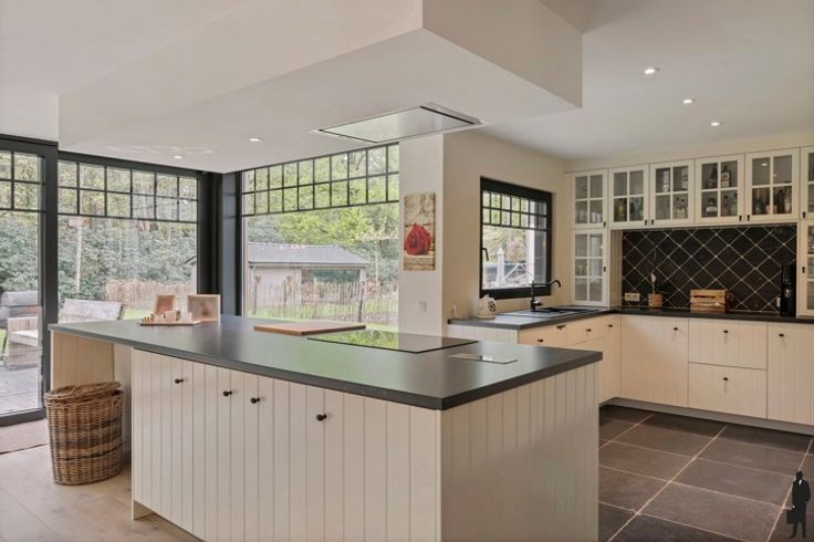 -Een open keuken met inductievuur, vaatwasmachine combi-oven en heteluchtoven
