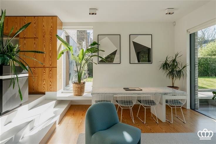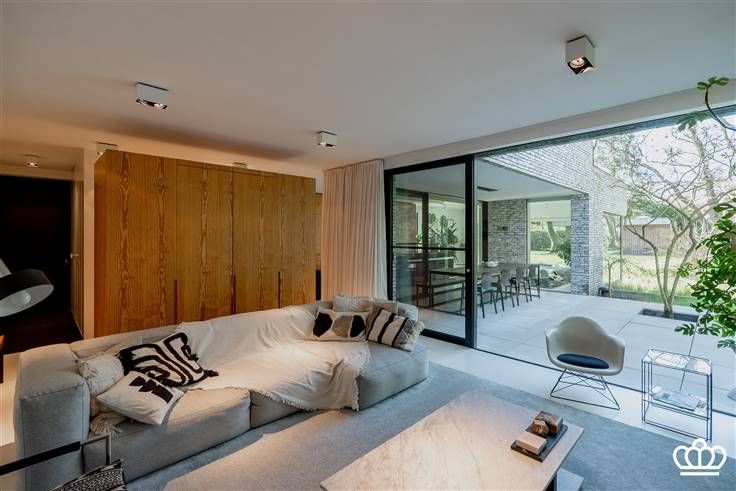 Moderne architecturale villa in het centrum van Heide, gelegen op een zuidgericht perceel van ca. 1.135 m². Deze unieke woning combineert strakke lijnen met een doordachte indeling en hoogwaardige afwerking. Via de carport komt u in de inkomhal met vestiaire, gastentoilet en ingebouwde kasten. De eerste leefruimte met grote raampartijen is voorzien van maatkasten en een ingewerkt bureel. De open leefkeuken beschikt over Miele-apparatuur, een groot keukeneiland met zitruimte en toegang tot het overdekte terras. Een tweede, verlaagde leefruimte kijkt uit op de tuin en zorgt voor extra sfeer. Het gelijkvloers is voorzien van een gietvloer met vloerverwarming. Op de eerste verdieping vindt u de master bedroom met ensuite dressing en luxebadkamer (inloopdouche, ligbad, dubbele lavabo, apart toilet), twee ruime slaapkamers met maatkasten, een vierde kamer, aparte douchekamer en een wasplaats. De kelder omvat een polyvalente ruimte en technische lokalen. De volledig omheinde tuin met zuidoriëntatie is een oase van rust. Vooraan bevindt zich een carport en een aangelegde oprit. Instapklaar, licht, energiezuinig en centraal gelegen – deze villa is een echte eyecatcher! De oppervlakten zijn indicatief en gebaseerd op het EPC. Bijzonderheden - Ontworpen door architecten De Meester-Vliegen - Bouwjaar 2015 - Gelijkvloers vloerverwarming, 1ste verdieping radiatoren op hoogrendement gasketel Vaillant
